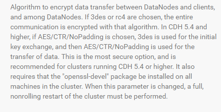 – Encryption in motion. Hadoop is distributed system and definitely there is data movement (over the network) happens. This traffic could be intercepted. To prevent this we have to encrypt it. This called encryption in motion