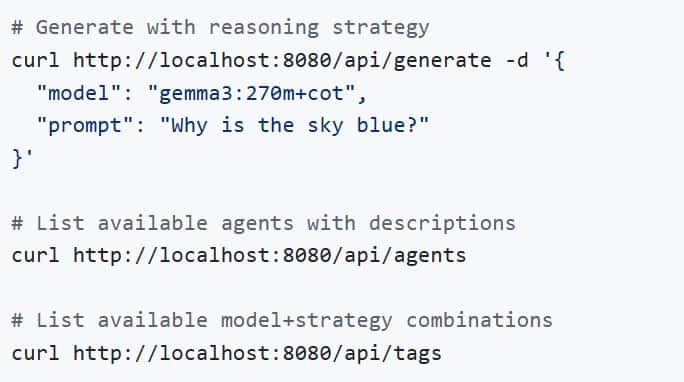 Three-command quick start, one-line install script, and ready-to-run demos in a Jupyter notebook. A proxy lets existing Ollama apps adopt reasoning by just changing the base URL/model name.