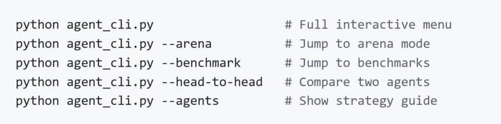 Use the rich CLI to access all agents, comparisons and benchmarks.