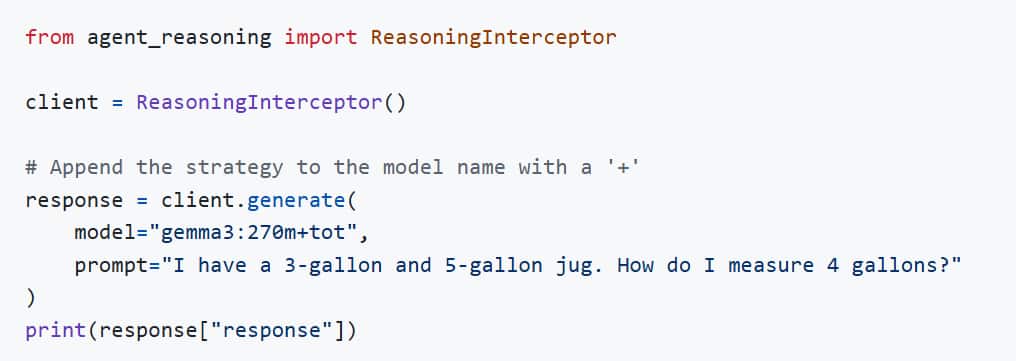 Use the ReasoningInterceptor as a drop-in replacement for your LLM client.