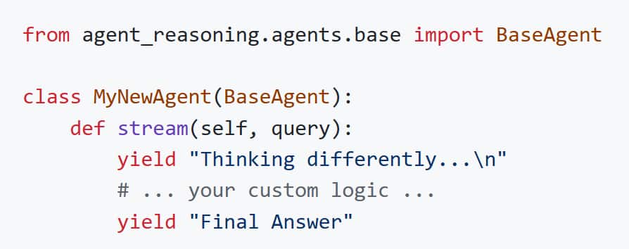 - Create a class in src/agent_reasoning/agents/ inheriting from BaseAgent.