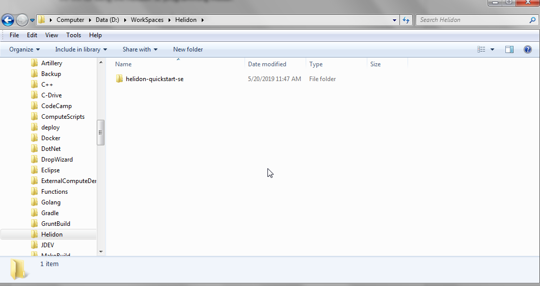 When executed, this Maven command will create the helidon-quickstart-se folder.