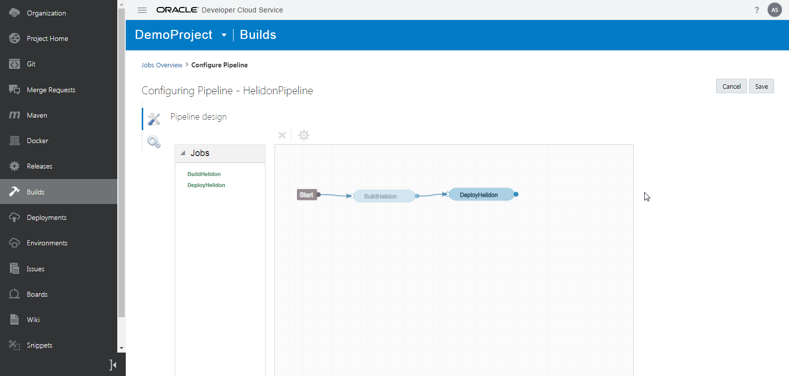 Drag and drop the BuildHelidon and DeployHelidon build jobs and then connect them.