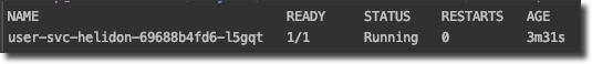 kubectl logs user-svc-helidon-69688b4fd6-l5gqt