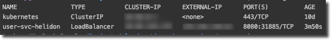Finally, verify the service was created and assigned an IP address (this will take a minute or two to complete for new services):