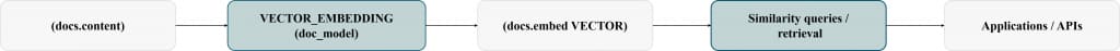 In practice, this means embeddings are computed where the data lives, and the results can be immediately stored, indexed, filtered, and combined with SQL predicates in the same workflow.