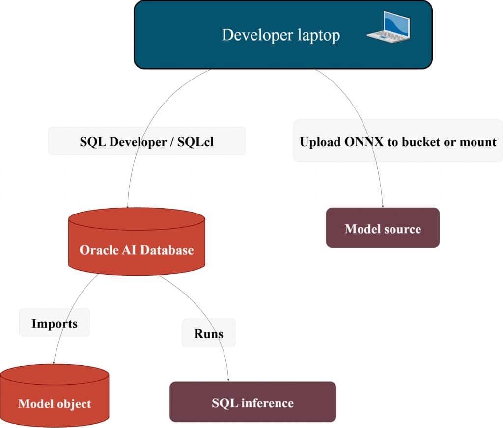 • Importing ONNX into Oracle AI Database is not “uploading a file”—it registers a model object in your schema.