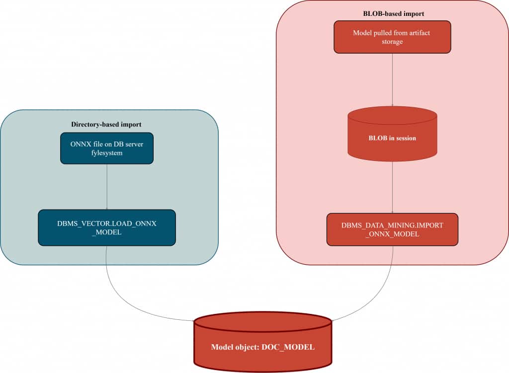 • BLOB-based import: model comes as a BLOB (for example, retrieved from object storage via your preferred mechanism), then imported.