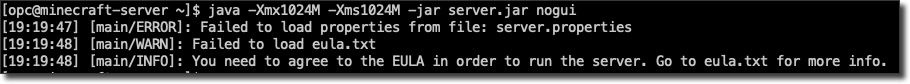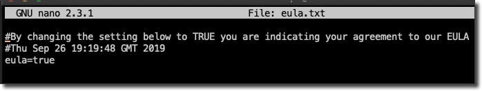 Open the file ‘eula.txt‘ with ‘nano eula.txt‘ and edit it like so: