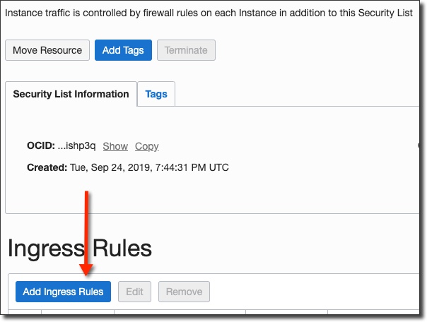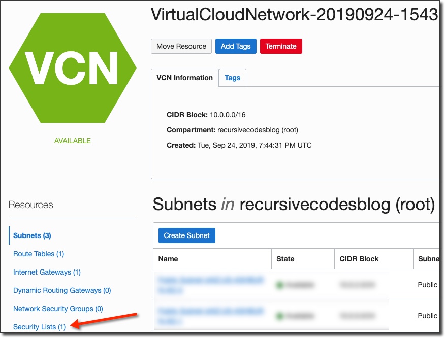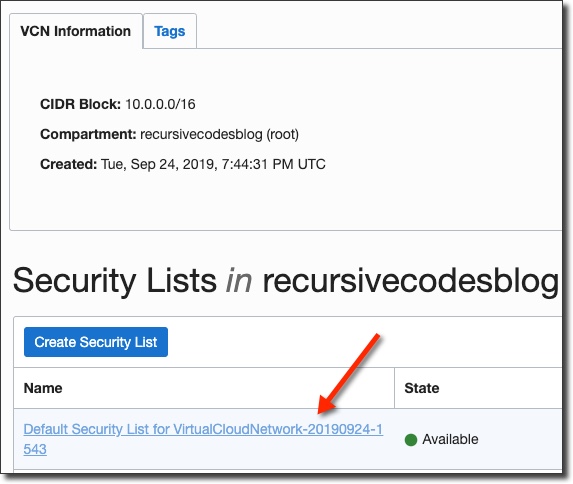 On the next page, look on the left side of the page for a link called ‘Security Lists’ and click on it: