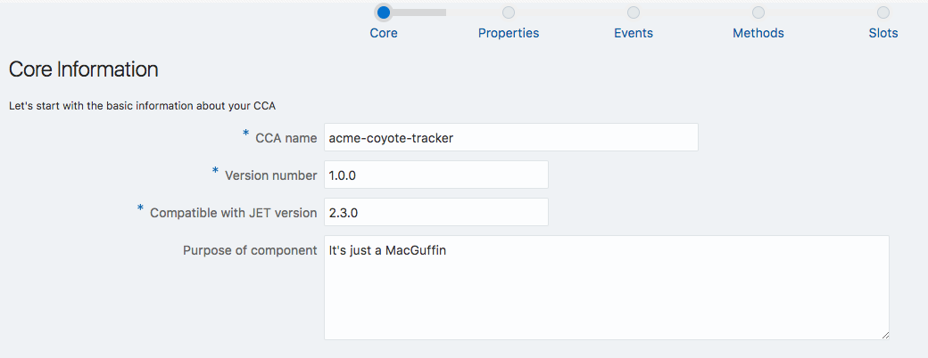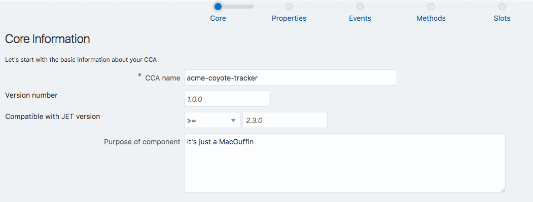 To illustrate this process I’m going to use an example form from a little application that I’m building. This is a wizard based UI that, guess-what, helps you to create CCAs. Here’s an early version of one of the screens: