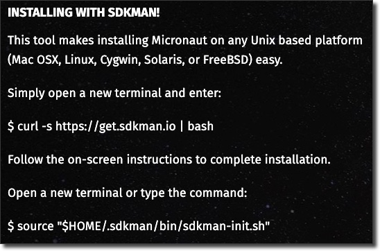 If you haven’t yet worked with Micronaut, the first thing you’ll want to do is install the Micronaut CLI which we can use to scaffold our our application and some additional classes as needed. Simple instructions for installing the CLI, taken from the Micronaut site are as follows: