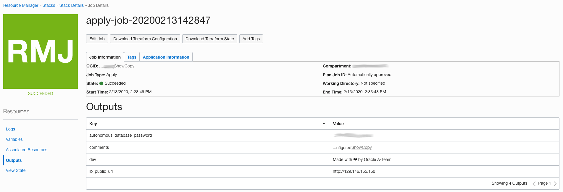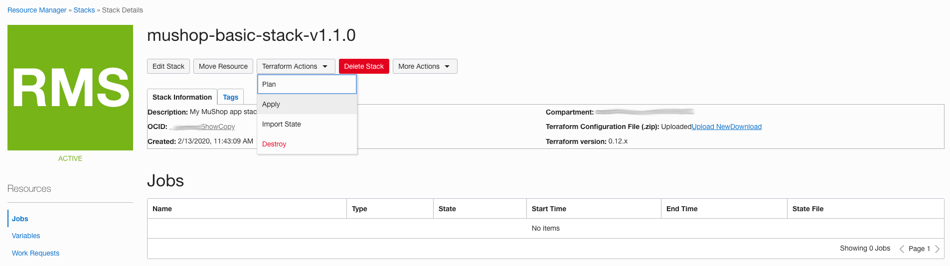 1. In the Oracle Cloud Console, return to your Stacks under Home > Solutions and Platform > Resource Manager > Stacks