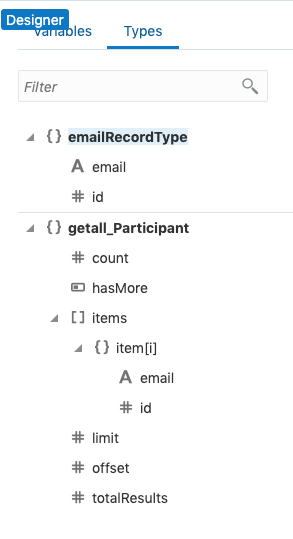 To keep your code readable and maintainable, I strongly encourage the liberal use of well defined types to make mapping clearer and less error prone. For my use case, the Participant Business object exposes a GET many endPoint for which we’ll want to generate a type, and I’ll also create a simple object for the array row type called emailRecordType:
