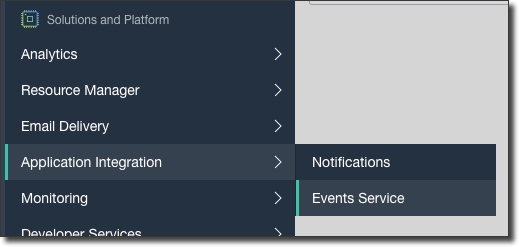 To create a new cloud event rule, click on Application Integration -> Events Service in the sidebar menu: