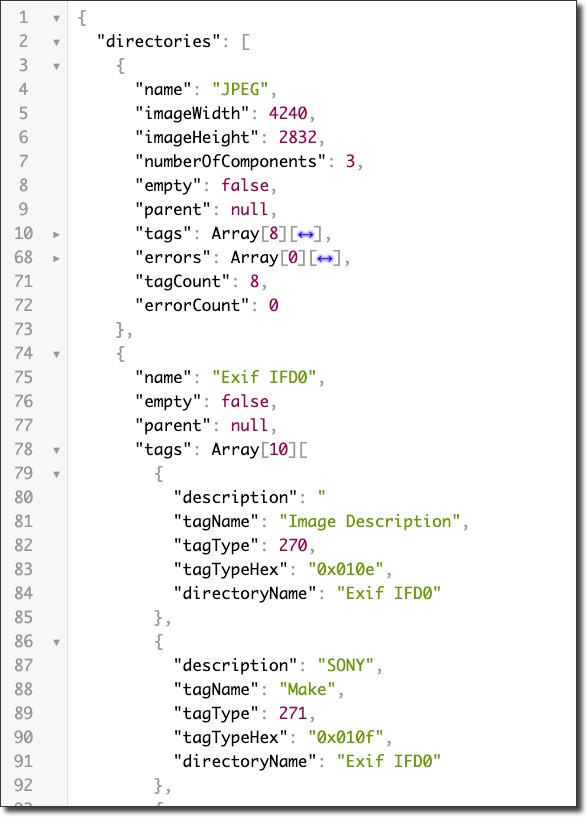 After a few seconds you can check your papertrail logs to see the metatadata that we wrote to System.out. Here is a formatted example from a test image that I have uploaded: