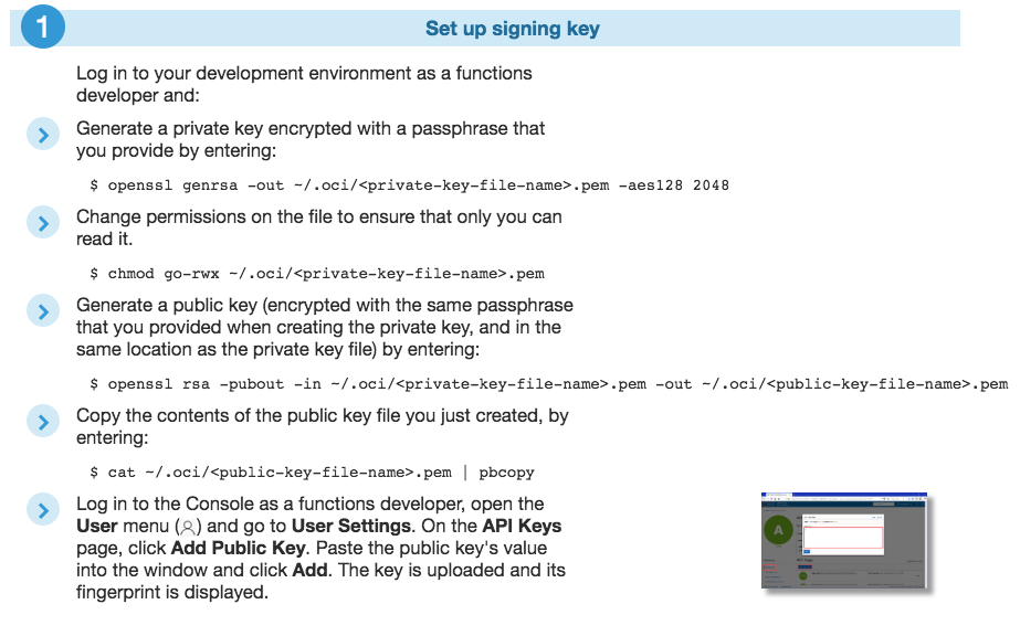 The rest of the configuration is a multi-step process that can take some time, and since no one likes to waste time on configuration when they could be writing code and deploying functions, I’ve thrown together a shell script to perform all the necessary configuration steps for you and get your tenancy completely configured to use Oracle Functions.