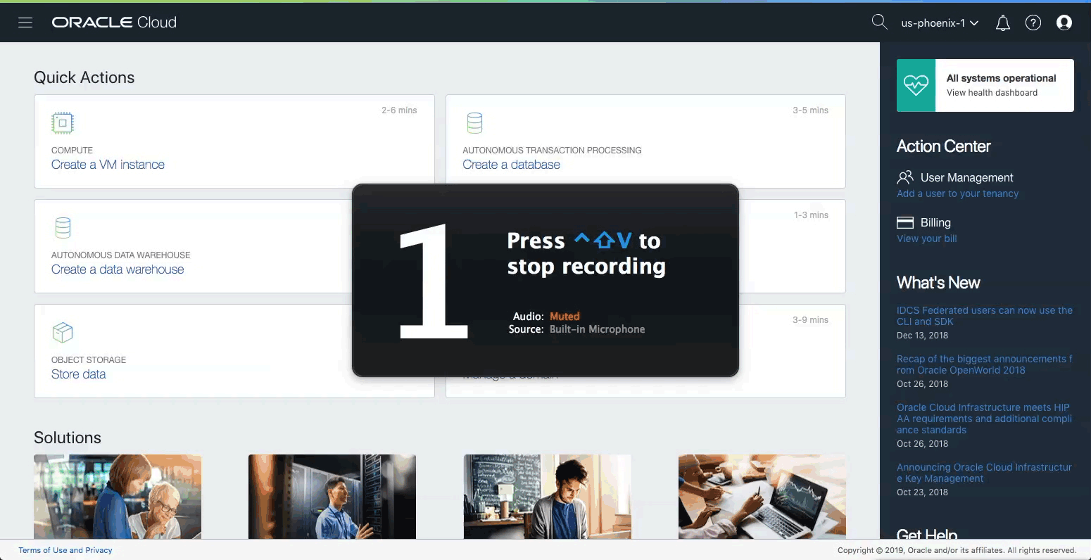 Before getting started you’ll need to configure your Oracle Cloud tenancy.  If you’re in the Limited Availability trial, make sure your tenancy is subscribed to the Phoenix region because that’s currently the only region where Oracle Functions is available.  To check and/or subscribe to this region, see the following GIF: