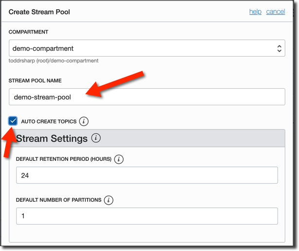 We’re now ready to launch Kafka Connect and create our Source Connector to listen to our TEST table. We’re going to use the Debezium Connect Docker image to keep things simple and containerized, but you can certainly use the official Kafka Connect Docker image or the binary version. Before we can launch the Docker image, we’ll need to set up a property file that will be used to configure Connect. We’ll need some of the values that we collected earlier, so keep those handy. We’ll also need our streaming username which we collected from our Stream Pool above (see the SASL Connection String) and our auth token.  See this post for more info on dedicated streaming users and how to generate an auth token for that user.