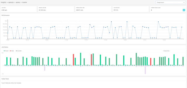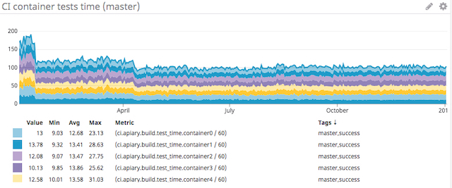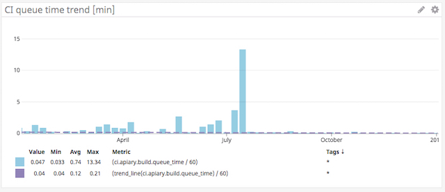 CircleCI does have its own metrics called Insights. They aren’t very helpful for making decisions, because you can only see the build times for the past 3 months, and it’s impossible to see the details or modify them for your specific use case.