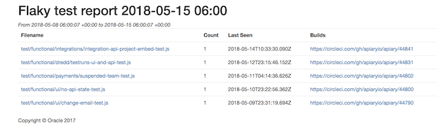 Apiary is using multiple Continuous Integration Engines (CIE). Our testing tool Dredd, for example, uses Travis CI to support multiple versions of Node.JS, and AppVeyor to support Windows. For a couple of projects we use Wercker which supports the Oracle Managed Kubernetes running our workload.