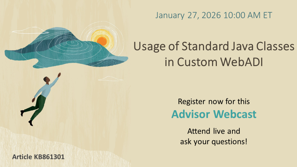 Visit the #EBS #AdvisorWebcast schedule for other upcoming sessions here: https://support.oracle.com/support/?kmExternalId=KB513953&source=:so:bl:or:awr:oeb:::&SC=:so:bl:or:awr:oeb:::&pcode=