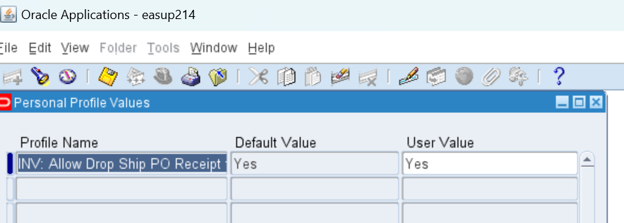 The Drop Ship PO receipt cand be successful when the profile “INV: Allow Drop Ship PO Receipt for Negative Availability” is set to “Yes”, and it fails when the same profile is set No.
