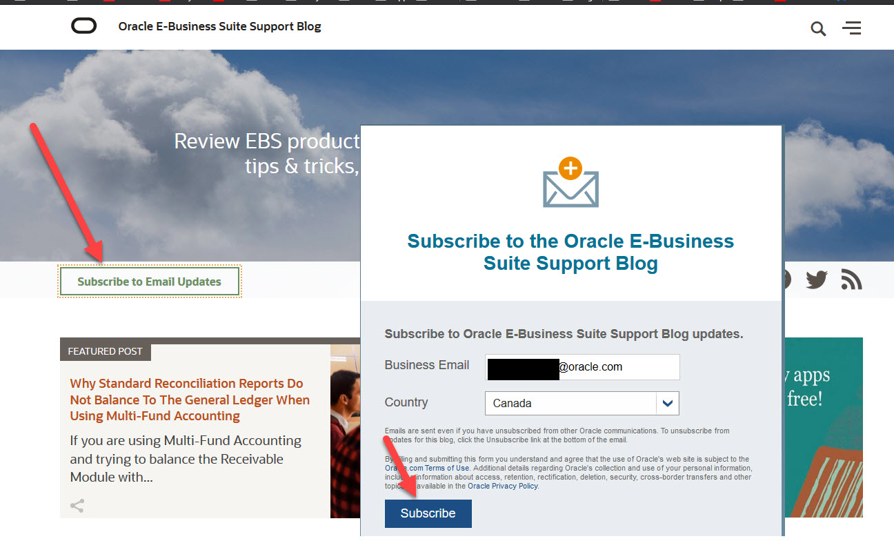 Subscribe to Receive E-mail Updates of posts from our Oracle E-Business Suite Support Blog