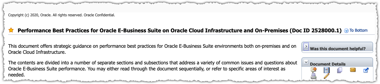 - Performance Best Practices for Oracle E-Business Suite on Oracle Cloud Infrastructure and On-Premises (MOS Note 2528000.1)