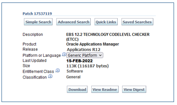 - ETCC Tool Enhanced for Finding Mandatory EBS 12.2 Patches