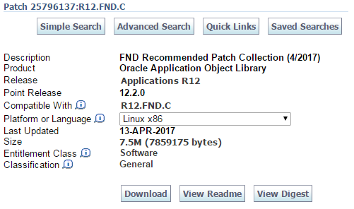 - EBS 12.2 FND Recommended Patch Collection (04/2017) (Patch 25796137)