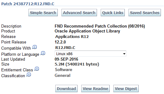 - EBS 12.2 FND Recommended Patch Collection (08/2016) (Patch 24387712)