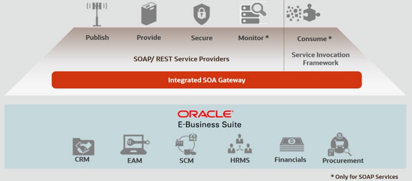 Oracle E-Business Suite Integrated SOA Gateway (ISG) provides an infrastructure to provide, consume, and administer Oracle E-Business Suite web services. It service-enables public integration interfaces registered in Oracle Integration Repository. These interfaces can be deployed as SOAP and/or REST-based web services. ISG also provides a service invocation framework to consume external SOAP based web services.