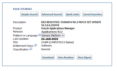 Note: As an EBS customer, if you require a FMW patch for your EBS environment and it is not accessible for download, log a service request with My Oracle Support to obtain access to the patch.