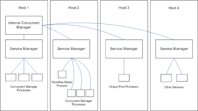 In Oracle E-Business Suite, concurrent processing simultaneously executes programs running in the background with online operations. When a user runs a report, a request to run the report is generated. The command to run the report is a concurrent request. The program that generates the report is a concurrent program. Concurrent programs are started by a concurrent manager.