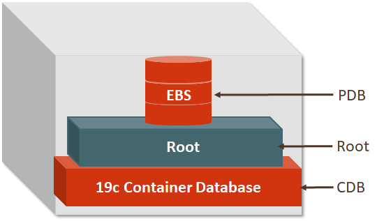 As part of the upgrade to Database 19c, you will convert your EBS database to the CDB architecture with a single pluggable database (PDB) or single tenant. Converting to the CDB architecture for an EBS database soon is desirable in any case, given the non-CDB architecture will be desupported from Oracle 20c on
