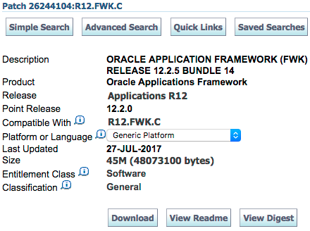 - Oracle Application Framework (FWK) Release 12.2.5 Bundle 14 (Patch 26244104:R12.FWK.C)