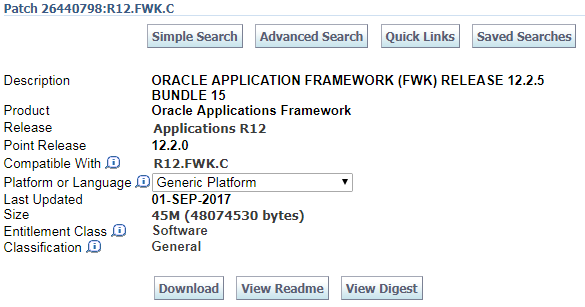 - Oracle Application Framework (FWK) Release 12.2.5 Bundle 15 (Patch 26440798:R12.FWK.C)