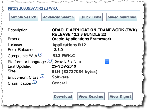 - Oracle Application Framework (FWK) Release 12.2.6 Bundle 22 (Patch 30339377:R12.FWK.C)