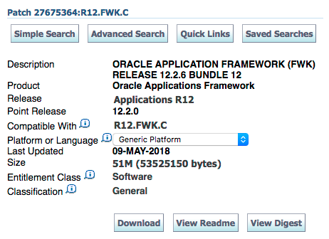 Oracle Application Framework (FWK) Release 12.2.6 Bundle 12 (Patch 27675364:R12.FWK.C)