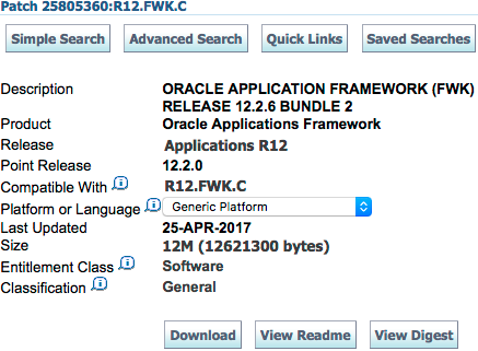- Oracle Application Framework (FWK) Release 12.2.6 Bundle 2 (Patch 25805360:R12.FWK.C)