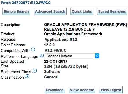 Oracle Application Framework (FWK) Release 12.2.6 Bundle 7 (Patch 26792877:R12.FWK.C)