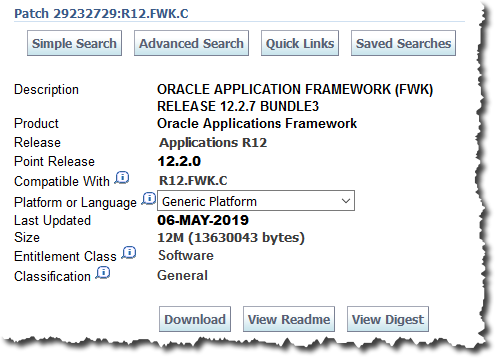 Oracle Application Framework (FWK) Release 12.2.7 Bundle 3 (Patch 29232729:R12.FWK.C)