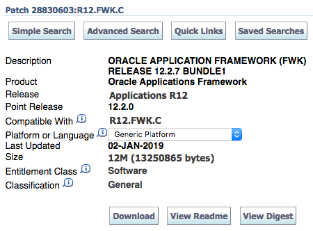 Oracle Application Framework (FWK) Release 12.2.7 Bundle 1 (Patch 28830603:R12.FWK.C )