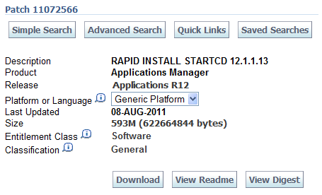 This new startCD version 12.1.1.13 includes important fixes for Platform specific issues such as support for AIX 7.1, global inventory registration problems in AIX 6.1 Power 7 Systems and a reoccurring fix for a corrupted datafile included in the 12.1.1 media for Linux 64: