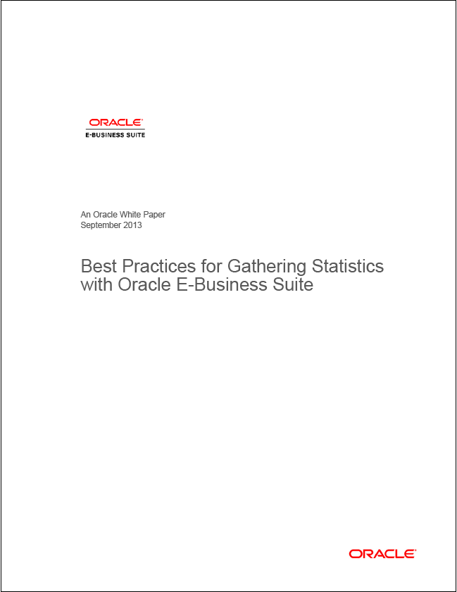 Our E-Business Suite Performance Team has been busy implementing and testing new features for gathering statistics using FND_STATS in Oracle E-Business Suite databases. The new features and guidelines for when and how to gather statistics are published in the following whitepaper: