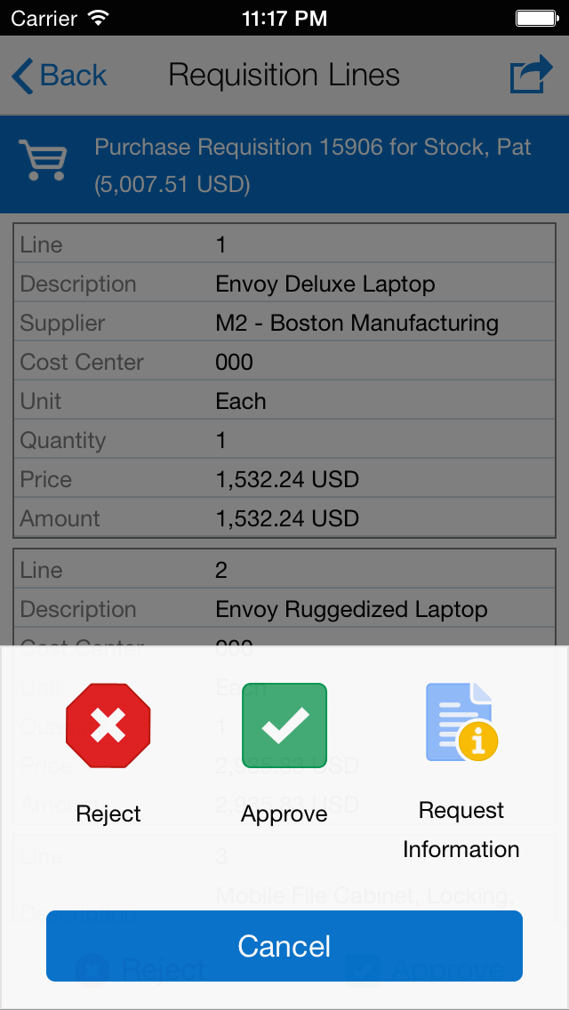 Oracle Mobile Approvals for Oracle E-Business Suite lets you respond on-the-go to your pending approval requests. From your phone, anywhere and anytime, take quick action on approval requests for expenses, requisitions, purchase orders, recruitment vacancies and offers, and more.