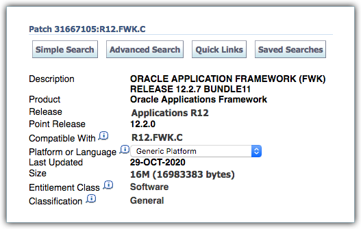- Oracle Application Framework (FWK) Release 12.2.7 Bundle 11 (Patch 31667105:R12.FWK.C)