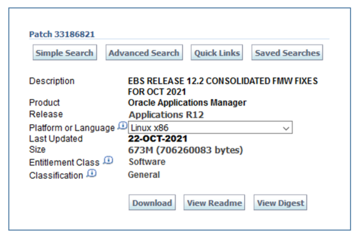 Note: As an EBS customer, if you require a FMW patch for your EBS environment and it is not accessible for download, log a service request with My Oracle Support to obtain access to the patch.