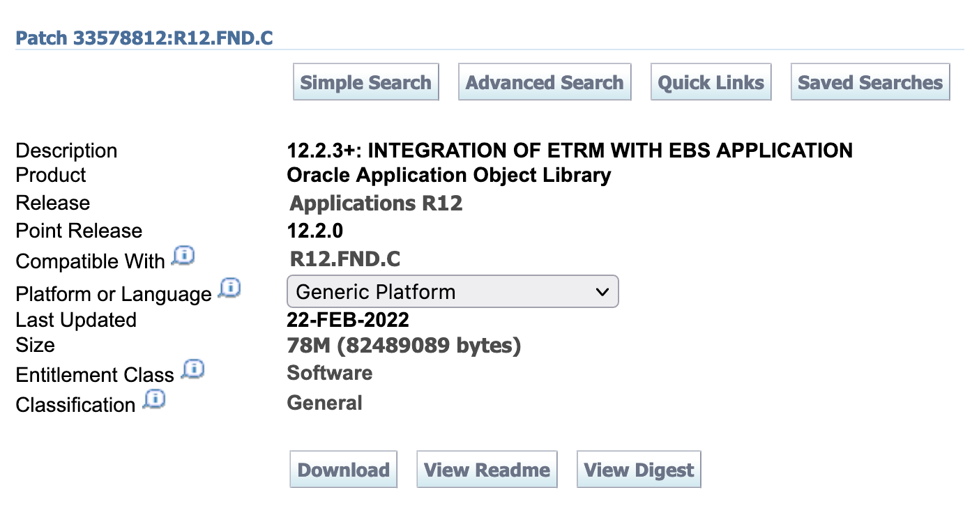 - Apply eTRM Patch 33578812:R12.FND.C. It is applicable for Oracle E-Business Suite Release 12.2.3 and onwards.